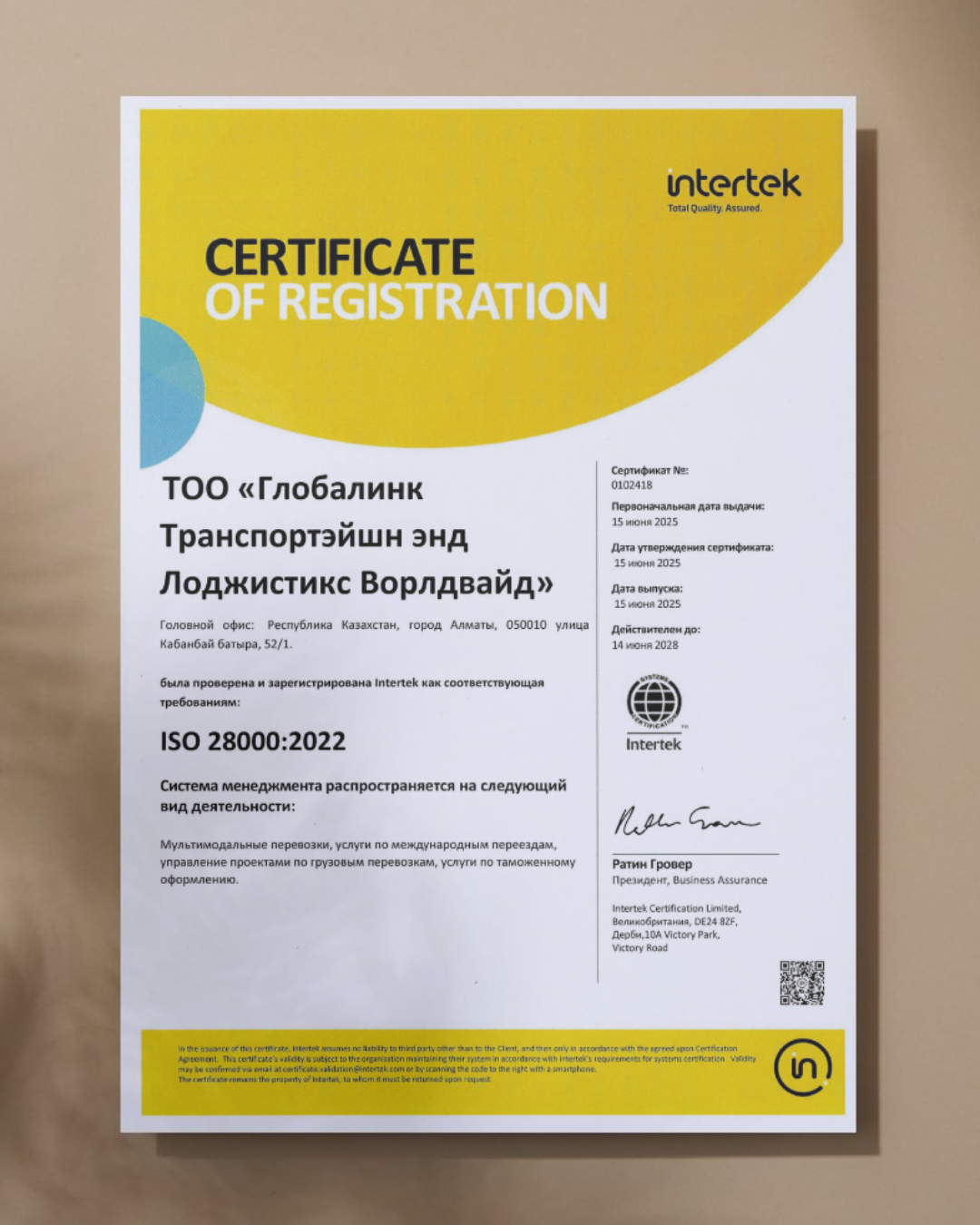 Сертификация подтверждает, что Globalink внедрила систему управления, обеспечивающую защиту цепей поставок в таких направлениях, как мультимодальные грузоперевозки, международные переезды, проектная логистика и таможенное сопровождение. В рамках аудита была проверена вся логистическая сеть компании: проведена оценка рисков, проверены механизмы обеспечения сохранности грузов, транспортной безопасности и контроля соответствия требованиям. Результаты показали соответствие Globalink международным стандартам надежности и устойчивости.